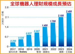 受惠疫情,全球機器人理財逆勢成長,信託公會也助攻國內機器人理財發展。信託公會9日舉辦研討會,阿爾發投顧董事長陳志彥指出,美國機器人理財2020年第一季開戶數大幅成長,包括Ameritrade成長150%、wealthfront成長68%、Betterment成長25%,且據Statista估計,全球機器人理財在2020年已有逾2億人、逾9千億美元的資產管理規模,預估2024年AUM會超越2.4兆美元。