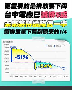 台中電廠除了去(108)年用煤量較103年大減將近600萬噸之外,自運轉以來持續強化污染防治設備,從106年起即陸續推動環保改善工程,一至四號機改善工程也於今年初全部完工,台中電廠去年空污排放更是較103年「砍半」,大減超過五成。台電強調,未來台中電廠五至十號機也將陸續展開環保改善工程,預計114年前可完成。此外,台中電廠新增燃氣機組預計也會在114年上線發電,屆時燃煤發電可以降低。預估到了114年,台中電廠空氣污染物排放量將較現在再降低超過五成。